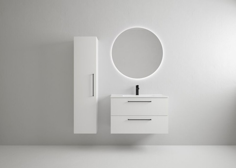 Leder du efter et flot og praktisk underskab, hvor du kan have plads til alt dit badeværelsestilbehør? Så er dette badmøbel i elegant mathvid et rigtigt godt valg. Skabet er inkl. vask, og du kan placere det lige under badeværelsesspejlet.