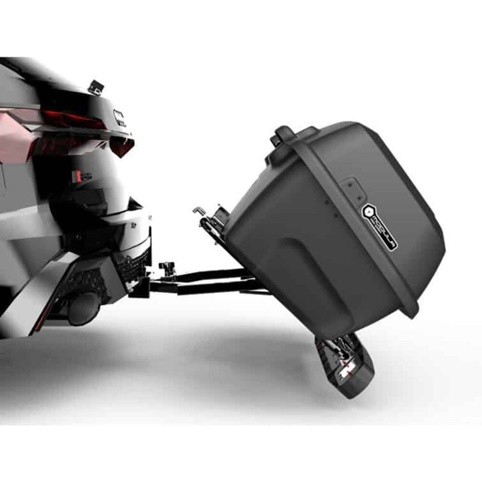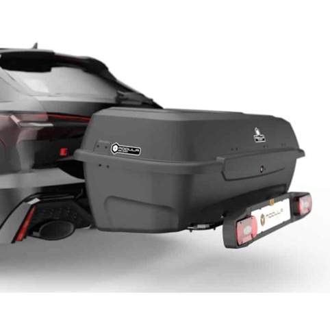 Bagageboksen er med tiltfunktion, hvilket giver dig nem adgang til bagagerummet, selv når boksen er monteret og læsset med bagage. Den har en egenvægt på 15 kg og kan klare en maks. belastning op til 45 kg. OBS: Modula ReLoader Box skal monteres på Modula Re-Cargo basen, som kan købes separat.
