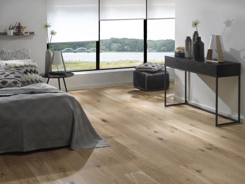 Plankegulvet er i FSC®-certificeret egetræ fra sorteringen Trend, der har større variation i alt fra farve, knast, splint, mørke indløb og spartlinger. Trend har en naturlig mængde og størrelse af knaster, der kan være repareret, ligesom der også kan forekomme spartlede revnedannelser. Det giver et trendy og levende udtryk, som fremhæver træets naturlige farve og struktur samt unikke æstetik. Bemærk dermed, at gulvets udseende og farve kan variere fra viste billeder.