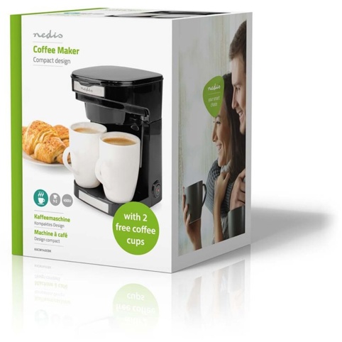 Med denne kompakte filterkaffemaskine fra Nedis kan du brygge 1–2 kopper kaffe hurtigt og nemt. Maskinen er perfekt til mindre husholdninger, kontoret, camping eller sommerhuset, og den kan brygge op til 2 kopper kaffe ad gangen med en kapacitet på 250 ml. Kaffemaskinen bruger et permanent nylonfilter, så du slipper for papirfilter. Den er utrolig nem at betjene med en enkelt on/offknap og indikatorlys, der viser, når maskinen er tændt. Den indbyggede automatisk slukning giver ekstra sikkerhed. Den har ikke en hold-varm-funktion.