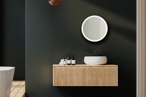 Stilfuldt og moderne rundt spejl med integreret LED-belysning