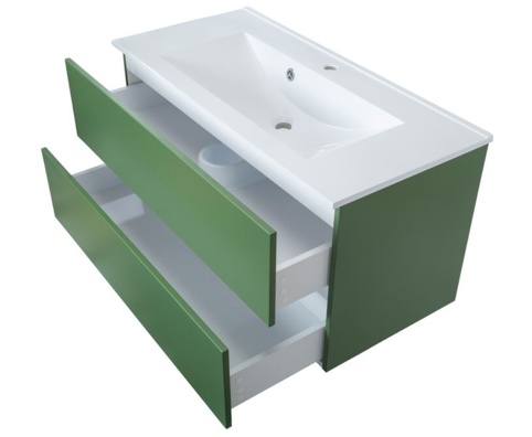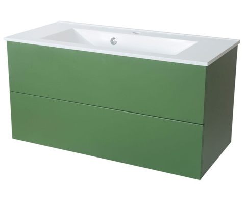 Møblet har en smuk støvet grøn farve, og det leveres uden forborede huller eller greb – du kan derfor sætte dit helt eget præg på badmøblet. Underskabet leveres færdigsamlet og har justérbare ophængsbeslag, der gør installationen nem og gør tilpasning af det ophængte møbel nemt og hurtigt. Håndvask skal købes separat.