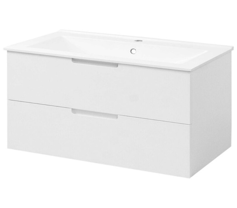 Samos underskabet er et elegant valg til dig, der ønsker en enkel og funktionel løsning til badeværelset. De rene linjer og den mathvide farve skaber ro og balance i rummet, og det enkle, tidløse design gør det nemt at matche med resten af indretningen. Underskabet har 2 rummelige skuffer, der er udstyret med soft-close-funktion, så de lukker blidt og lydløst, og de integrerede greb i skufferne skaber et strømlinet og minimalistisk udtryk. Der medfølger ophængsbeslag, skruer og plugs til montering af møblet.