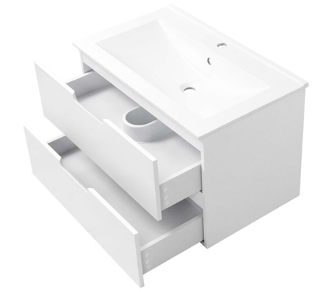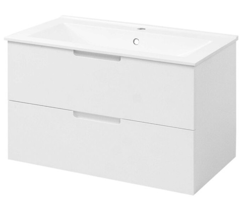 Samos underskabet er et elegant valg til dig, der ønsker en enkel og funktionel løsning til badeværelset. De rene linjer og den mathvide farve skaber ro og balance i rummet, og det enkle, tidløse design gør det nemt at matche med resten af indretningen. Underskabet har 2 rummelige skuffer, der er udstyret med soft-close-funktion, så de lukker blidt og lydløst, og de integrerede greb i skufferne skaber et strømlinet og minimalistisk udtryk. Der medfølger ophængsbeslag, skruer og plugs til montering af møblet.