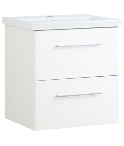 Sættet består af underskab med skuffer, porcelænsvask, greb og ophæng. Skufferne giver dig masser af opbevaringsplads og har fuldt udtræk, så du nemt kan få fat i det, du skal bruge. Soft-close-funktionen sikrer, at skufferne lukker stille og rolig. De medfølgende ophæng gør det nemt at montere badmøblet på væggen.