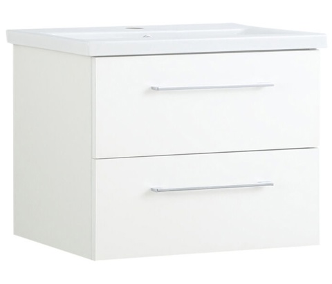 Sættet består af underskab med skuffer, porcelænsvask, greb og ophæng. Skufferne giver dig masser af opbevaringsplads og har fuldt udtræk, så du nemt kan få fat i det, du skal bruge. Soft-close-funktionen sikrer, at skufferne lukker stille og rolig. De medfølgende ophæng gør det nemt at montere badmøblet på væggen.
