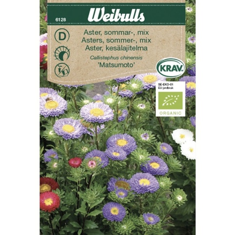 Asters kaldes også for sommerens farvel, da den står i blomst helt frem til efterårets omkring september måned. Asters har små stjerneformede blomster – derfor navnet ”aster”, som betyder stjerne på græsk. I denne frøpose får du Asters i et mix af smukke sommerfarver, der alle har en flot solgul midte. Asters får store blomster og bliver omkring 70 cm høje. Den er en god blomst at dyrke både på friland, i blomsterbed eller i krukker på altan og terrasse. Du giver blomsten de bedste forudsætninger, hvis den får en solrig plads. Asters er en fremragende snitblomst med en lang holdbarhed, så den kan også pryde stuen eller soveværelset i en vase.
