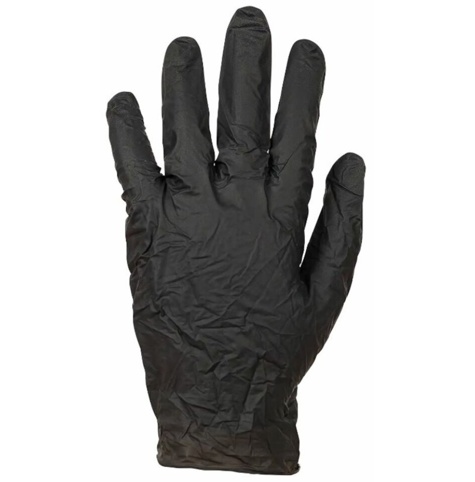 De sømløse nitrilhandsker er pudderfri og med en rullet kant, glat overflade og prægning på fingerspidserne. Det er et tyndt materiale med en tykkelse på 0,08 mm ved håndfladerne og 0,1 mm ved fingerspidserne, hvilket gør handsken tynd og smidig med en stor fingerføling. Produktet har en sort farve og er ens til højre og venstre hånd.