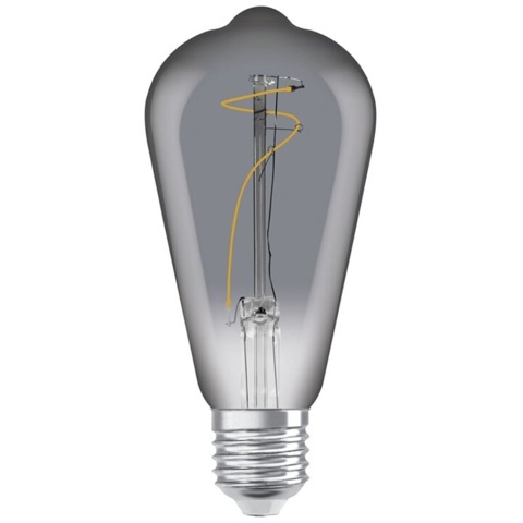 Pæren har flot røget glas, og designet hylder det industrielle look fra starten af 1900-tallet. Den er med E27-fatning og har en effekt på 3,4 W – erstatter en traditionel pære med 10 W.