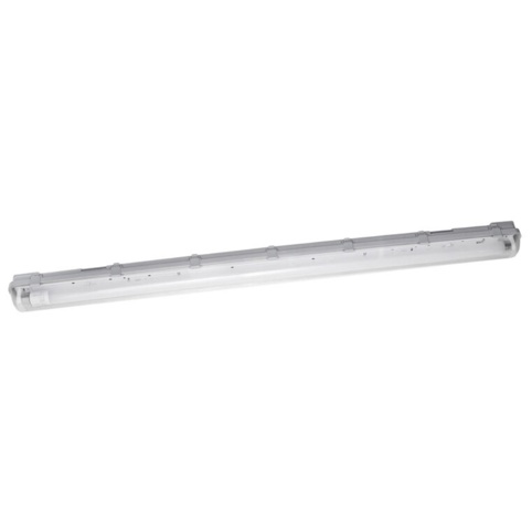 Mangler du belysning til fugtige eller støvede steder? Så kan du her finde dette Damp Proof Essentials lysarmatur, som er perfekt egnet til kælderen, garagen eller en lagerbygning. Der medfølger 1 x 15 W LED-lyskilde hertil, der har en lysstyrke på 1300 lumen og en lysfarve på 4000 Kelvin. Hvis du i fremtiden skal udskifte LED-røret, skal du være opmærksom på, at det har en maks. effekt på 15 W.