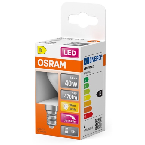 Har du brug for en ny pære, som kan erstatte en sprunget? Her finder du denne LED-kronepære, som er hvidmatteret, og den har lille fatning, der også er kaldet E14-fatning. Derudover bruger pæren kun 3,4 W i drift, som er svarende til 40 W. Kronepæren lyser en varm hvid farve, da den har en lysfarve på 2700 Kelvin og en lysstyrke på 470 lumen. Den er desuden dæmpbar, som kan være behageligt for øjnene – især om morgenen og aftenen.