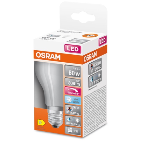 Er du på jagt efter en ny pære til din lampe? Så kan du her finde denne hvidmatteret LED-standardpære med glødetråde. Pæren bruger 5,8 W i drift, som er svarende til 60 W, og den har en E27-fatning – også kendt som stor fatning. Derudover lyser den med en kølig hvid farve, da den har en lysfarve på 4000 Kelvin og en lysstyrke på 806 lumen. Desuden er LED-pæren dæmpbar og har blue reduction, som reduceret blåt lys, der er en god løsning, hvis du vil have et behageligt og søvnvenligt lys i hjemmet uden at gå på kompromis med komforten..