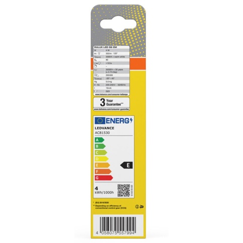 Mangler du et nyt lysstofrør til din lampe? Så kan du købe dette LED-lysstofrør, som har et lavt energiforbrug, da det bruger 4,5 W i drift. Lysstofrøret har en G23-fatning. Derudover lyser det en behagelig varm hvid farve, da lysfarven er på 3000 Kelvin, og lysstyrken er på 450 lumen.