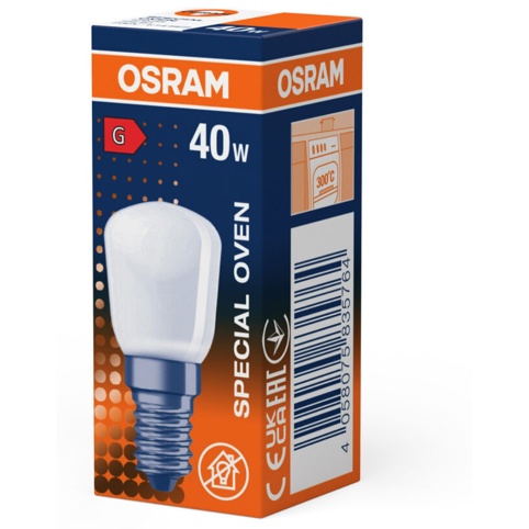 Hvis lyset i din ovn er sprunget, så kan du udskifte den med denne ovnpære fra Osram. Det er en robust glødepære, som er udviklet specifikt til brug i ovne og andre højtemperaturområder. Ovnpæren bruger 40 W i drift og har en E14-fatning (også kaldet for lille fatning). Derudover lyser den en behagelig og varm hvid farve, da lysfarven er 2600 Kelvin, og lysstyrken er på 300 lumen.
