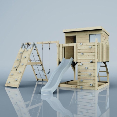 Legetårnet er også et super-godt supplement til at stimulere dine børns fantasi, motorik og balance. Under platformen kan I med fordel lave en sandkasse (ekskl. sand). Legeprojektet er inkl. gynger, rutsjebane, klatresten, reb og ophæng.