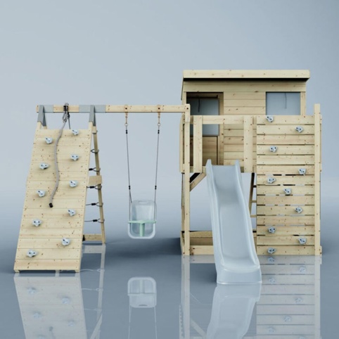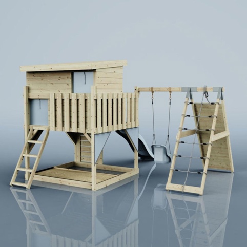 Legetårnet er også et super-godt supplement til at stimulere dine børns fantasi, motorik og balance. Under platformen kan I med fordel lave en sandkasse (ekskl. sand). Legeprojektet er inkl. gynger, rutsjebane, klatresten, reb og ophæng.