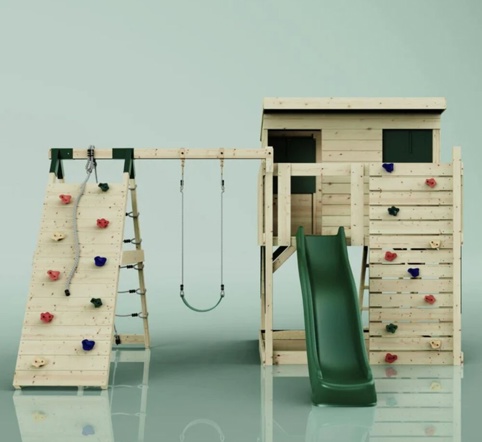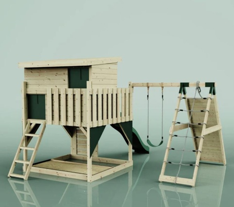 Legetårnet er også et super-godt supplement til at stimulere dine børns fantasi, motorik og balance. Under platformen kan I med fordel lave en sandkasse (ekskl. sand). Legeprojektet er inkl. gynger, rutsjebane, klatresten, reb og ophæng.