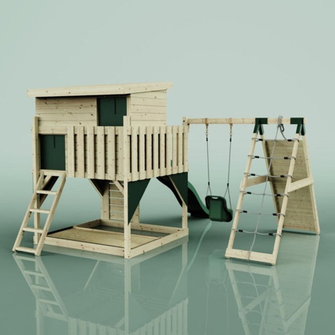 Legetårnet er også et super-godt supplement til at stimulere dine børns fantasi, motorik og balance. Under platformen kan I med fordel lave en sandkasse (ekskl. sand). Legeprojektet er inkl. gynger, rutsjebane, klatresten, reb og ophæng.