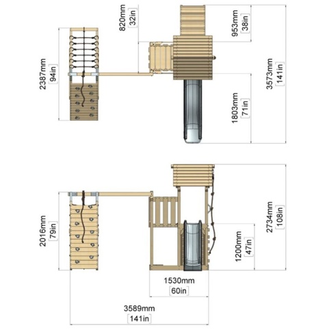 Farö legetårnet er fremstillet af ubehandlet træ og kan have revner – dette vil ikke påvirke strukturen eller styrken. Vi anbefaler, at træet behandles inden montering for at beskytte mod vejr og skadedyr. Ved levering medfølger alle nødvendige dele, og du kan nemt komme i gang med opsætningen. Bemærk, at træet ikke er forboret.