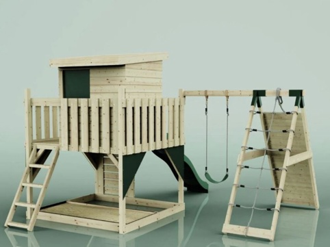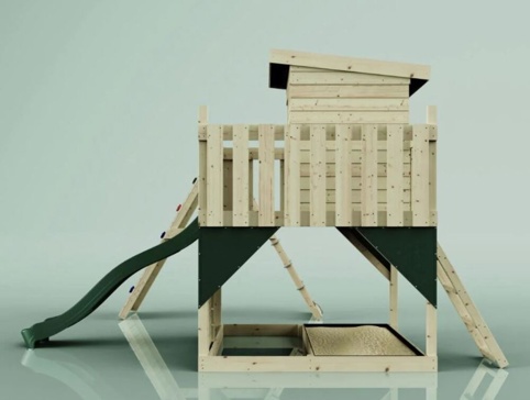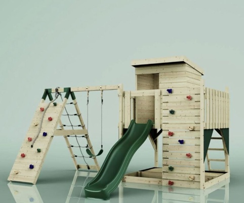 Freja legetårnet er en komplet legeplads, der giver børn masser af muligheder for at lege, klatre og udfordre sig selv. Med både gynge, klatrevæg, klatrenet og rutsjebane får børnene en sjov og varieret legeoplevelse, som både styrker motorik, balance og fantasi. Under platformen kan Iigøre plads til en sandkasse (ekskl. sand). Legepladsen er perfekt til familiens yngste eventyrere, der elsker at kombinere aktiv leg med kreativ udfoldelse.
