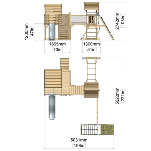 Legetårnet er fremstillet af ubehandlet træ, som kan have naturlige revner. Disse påvirker ikke konstruktionens styrke eller holdbarhed, men det er en naturlig del af materialet. Vi anbefaler, at du behandlet træet – så du undgår skader fra vejr og skadedyr. Denne behandling skal ske, inden det er samlet. Ved levering medfølger alle nødvendige dele, så du hurtigt kan gå i gang. Træet er ikke forboret.