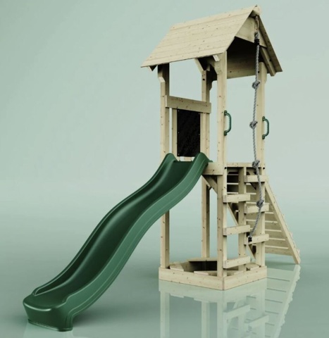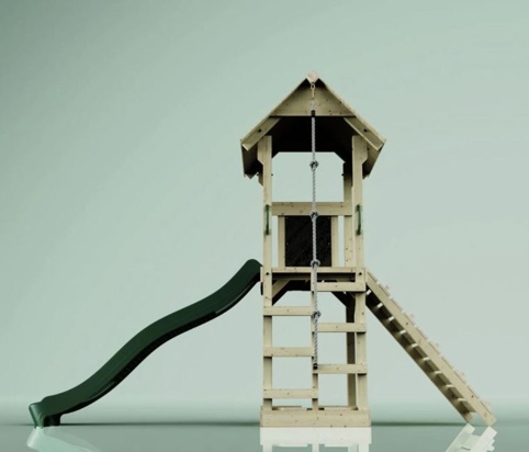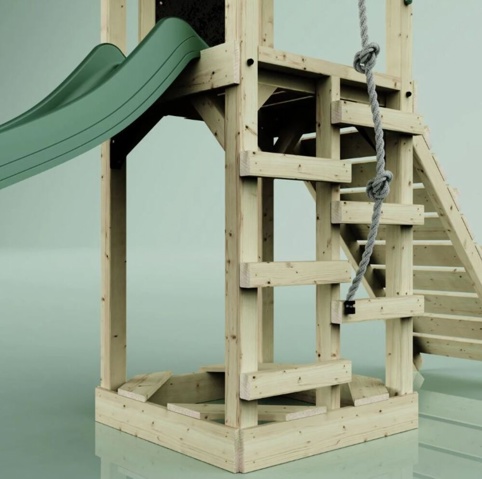 Legetårnet er et super-godt supplement til børns udvikling – her stimuleres både motorik, koordination og fantasi gennem leg og bevægelse. Legeprojektet er inkl. rutsjebane, stige, jordankre, reb og ophæng.