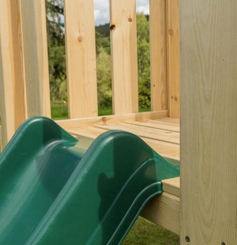 Legetårnet er fremstillet af ubehandlet træ, som kan have naturlige revner. Disse påvirker ikke konstruktionens styrke eller holdbarhed, men det er en naturlig del af materialet. Vi anbefaler, at du behandlet træet – så du undgår skader fra vejr og skadedyr. Denne behandling skal ske, inden det er samlet. Ved levering medfølger alle nødvendige dele, så du hurtigt kan gå i gang. Træet er ikke forboret.