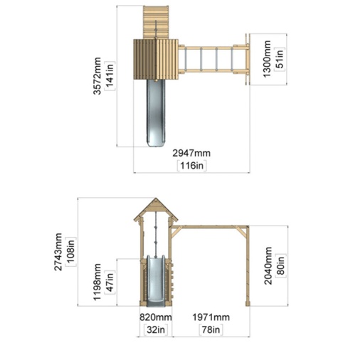 Legetårnet er fremstillet af ubehandlet træ, som kan have naturlige revner. Disse påvirker ikke konstruktionens styrke eller holdbarhed, men det er en naturlig del af materialet. Vi anbefaler, at du behandlet træet – så du undgår skader fra vejr og skadedyr. Denne behandling skal ske, inden det er samlet. Ved levering medfølger alle nødvendige dele, så du hurtigt kan gå i gang. Træet er ikke forboret.