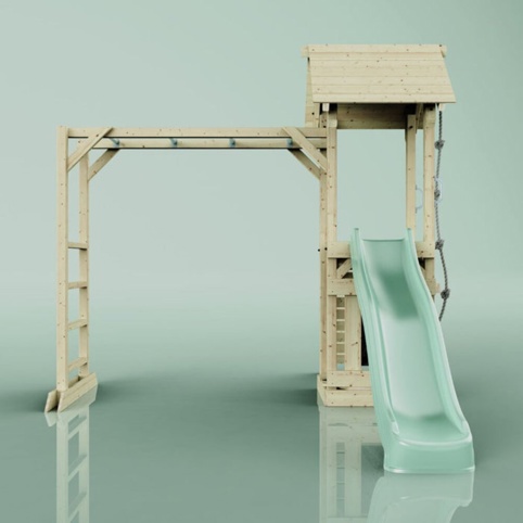 Gør haven til et spændende legeområde med dette legetårn, hvor der er plads til både sjov, fantasi og udfordringer. Børnene kan klatre op på platformen, tage turen ned ad den sjove bølgerutsjebane, prøve kræfter med klatretovet eller svinge sig i armgangen. Tårnet indbyder til mange timers aktiv leg, hvor børnene kan bruge kroppen, styrke balancen og udfolde fantasien.