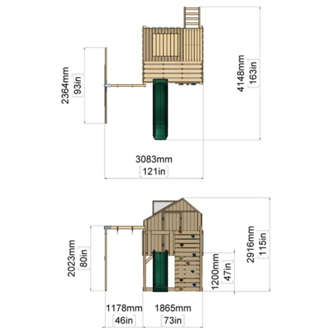 Legetårnet er fremstillet af ubehandlet træ, som kan have naturlige revner. Disse påvirker ikke konstruktionens styrke eller holdbarhed, men det er en naturlig del af materialet. Vi anbefaler, at du behandlet træet – så du undgår skader fra vejr og skadedyr. Denne behandling skal ske, inden det er samlet. Ved levering medfølger alle nødvendige dele, så du hurtigt kan gå i gang. Træet er ikke forboret.