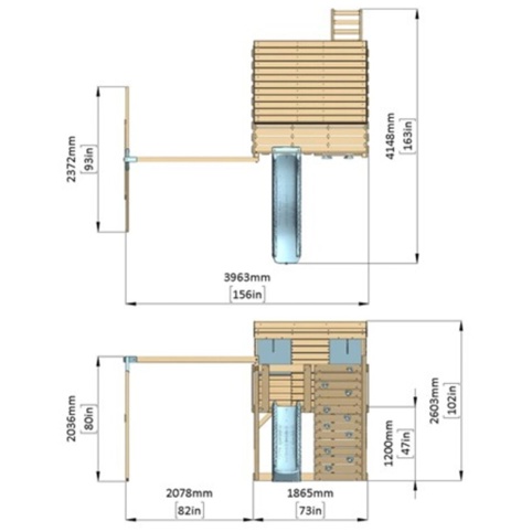 Der er nem adgang via trappen og super-sjov udgang via rutsjebanen – og hvis de vil have en sværere adgang, kan de klatre op af klatrevæggen. Vær opmærksom på, at du bør fastgøre projektet med jordankre (ekskl.).