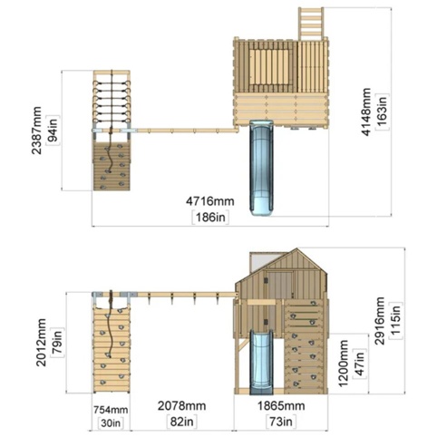Legetårnet er fremstillet af ubehandlet træ, som kan have naturlige revner. Disse påvirker ikke konstruktionens styrke eller holdbarhed, men det er en naturlig del af materialet. Vi anbefaler, at du behandlet træet – så du undgår skader fra vejr og skadedyr. Denne behandling skal ske, inden det er samlet. Ved levering medfølger alle nødvendige dele, så du hurtigt kan gå i gang. Træet er ikke forboret.