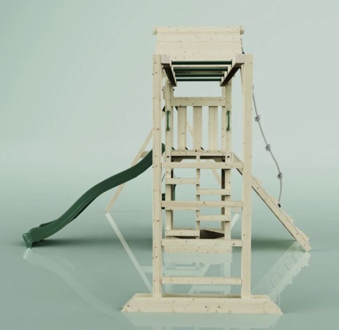 Legetårnet er også et super-godt supplement til at stimulere dine børns fantasi, motorik og balance – dette vil ske igennem leg og bevægelse. Under platformen kan I med fordel lave en sandkasse (ekskl. sand). Legeprojektet er inkl. gynger, rutsjebane, 4 stk. jordankre, reb og gyngeophæng (kridttavlen er ekskl.).
