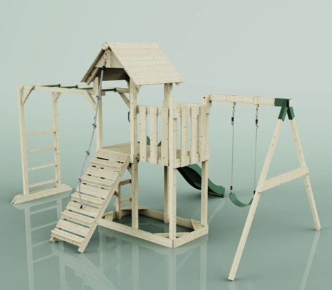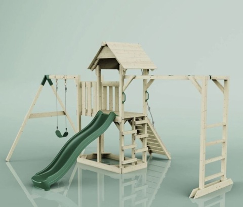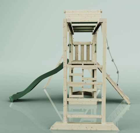 Med et legetårn i haven kan du give børnene timevis af leg og sjov, og dette legeunivers kombinerer gynger, rutsjebane og klatreudfordringer i ét. Tårnet er udstyret med en platform i 120 cm højde, som børnene kan nå via stige eller tovklatring og suse ned ad den sjove bølgerutsjebane. På hver side af tårnet kan børnene klatre, gynge frem og tilbage eller udfordre sig selv på armgangen. Den 120 cm høje platform skaber et naturligt samlingspunkt for leg, hvor fantasien kan få frit spil. Legetårnet er ideelt til aktiv leg og udvikling, da det stimulerer børns motorik, balance og koordination gennem bevægelse.