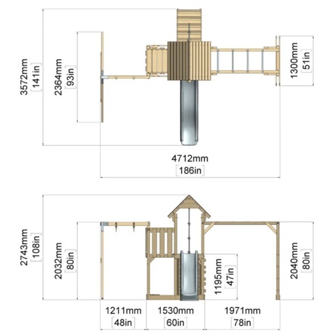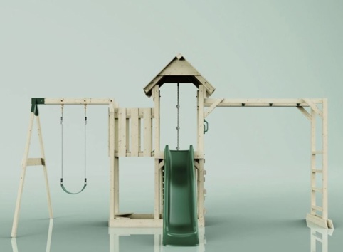 Under platformen kan I med fordel lave en sandkasse (ekskl. sand). Legeprojektet er inkl. gynge, rutsjebane, reb og ophæng. Vi anbefaler, at produktet anvendes til børn over 3 år.