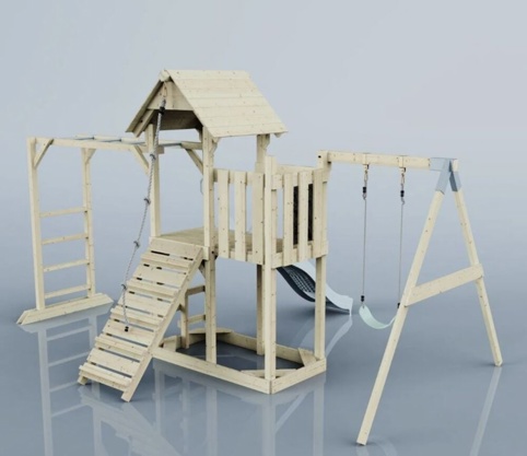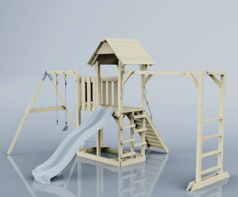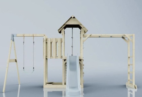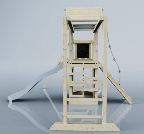 Med et legetårn i haven kan du give børnene timevis af leg og sjov, og dette legeunivers kombinerer gynger, rutsjebane og klatreudfordringer i ét. Tårnet er udstyret med en platform i 120 cm højde, som børnene kan nå via stige eller tovklatring og suse ned ad den sjove bølgerutsjebane. På hver side af tårnet kan børnene klatre, gynge frem og tilbage eller udfordre sig selv på armgangen. Den 120 cm høje platform skaber et naturligt samlingspunkt for leg, hvor fantasien kan få frit spil. Legetårnet er ideelt til aktiv leg og udvikling, da det stimulerer børns motorik, balance og koordination gennem bevægelse.
