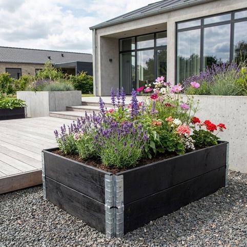 Fleksibelt højbedssystem i sort til pallerammer