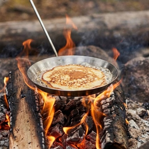 Med denne pandekagepande fra Blue Mountain kan du lave pandekager til hele familien og venner uden at brænde dig på bålets flammer. Panden måler Ø18 cm og skaftet måler L: 101 cm. Materialet er stål og skaftet har et håndtag lavet af træ. Pandekagepanden anvendes udendørs til grilning af pandekager over bål, hvor du kan lave nogle rare stunder med frisk luft. Bålets flammer og varme gør at i kan opholde jer udenfor i længere tid uden at fryse. Samtidig kan i lave pandekager og hygge jer med det, så sikrer denne pande dig, din familie og venner nogle hyggelige stunder omkring bålet. Efter brug er den meget nem at rengøre, og der er derved minimal rengøring med denne pande.