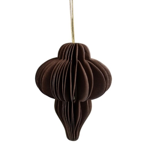 Dette fine papirornament er perfekt at bruge til at skabe en hyggelig og julet stemning – du kan f.eks. hænge papirornamentet op ved vinduet eller over middagsbordet – her vil det skabe et yndigt udtryk og en dejlig stemning i rummet. Dette brune papirornament er – som navnet antyder – fremstillet af papir. Det måler Ø: 8 cm x H: 12,5 cm.