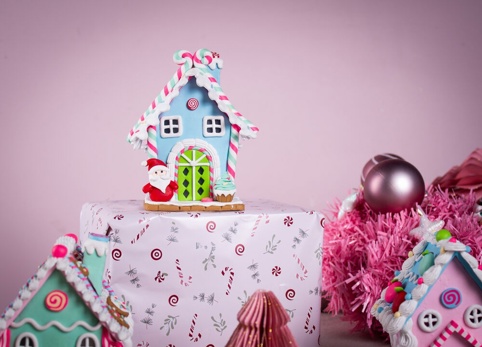 Dette eventyrlige og farverige peberkagehus med LED-lys kan skabe en magisk og festlig stemning i juletiden. Når LED-lyset tændes, forvandles huset til et glødende juleparadis, der spreder hygge i stuen, vindueskarmen eller som en del af en juleby. Et must-have for enhver, der vil skabe en hyggelig, varm og fantasifuld julestemning til boligen. Det bruger 2 x AAA-batterier (ekskl.), og der er en praktisk timerfunktion, som automatisk er tændt i 6 timer, når du tænder den, og er slukket i efterfølgende 18 timer. Denne vare er assorteret, og du kan ikke vælge farve online.