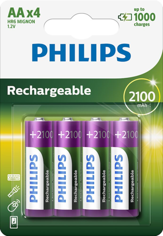 <h2>Brug dine genopladelige batterier igen og igen</h2><p>Mangler du nye batterier til fjernbetjeningen eller lommelygten? Det problem kan du undgå ved at bruge genopladelige batterier, så du altid har et opladet batteri ved hånden, når det gamle er løbet tør. Så kan du både spare penge og selv genoplade i stedet for at købe nye batterier. Pakken indeholder 4 stk. AA-batterier, der kan genoplades op til 1000 gange.</p>