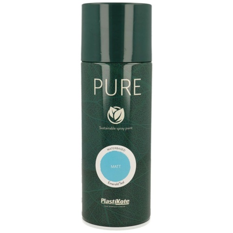 <h2>Vandbaseret og lugtfri Pure-spraymaling med god dækkeevne</h2><p>Med denne Pure-spraymaling fra Plasti-Kote kan du vælge et nyt og mere skånsomt alternativ til den velkendte spraydåse. Den vandbaserede spraymaling er først og fremmest produceret med meget få opløsningsmidler – 96% mindre end andre spraymalingstyper. Den er lugtfri, har rigtig god dækkeevne og kan også anvendes til legetøj. Selve spraydåsen er lavet i bluemint®-stål, der er en ståltype med 64% mindre CO2-emission under produktionen. Låget er lavet af genanvendt plast. Spraydåsen indeholder 350 ml.</p>