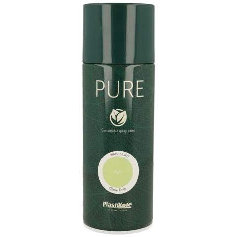 <h2>Vandbaseret og lugtfri Pure-spraymaling med god dækkeevne</h2><p>Med denne Pure-spraymaling fra Plasti-Kote kan du vælge et nyt og mere skånsomt alternativ til den velkendte spraydåse. Den vandbaserede spraymaling er først og fremmest produceret med meget få opløsningsmidler – 96% mindre end andre spraymalingstyper. Den er lugtfri, har rigtig god dækkeevne og kan også anvendes til legetøj. Selve spraydåsen er lavet i bluemint®-stål, der er en ståltype med 64% mindre CO2-emission under produktionen. Låget er lavet af genanvendt plast. Spraydåsen indeholder 350 ml.</p>
