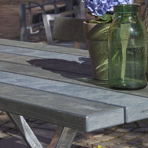 Det nye bord-/bænkesæt er fremstillet i gråt ReTex med stålforstærkning, som er et robust og vejrbestandigt materiale. ReTex er sammensat af 100 % genanvendte tekstiler og plast, som er vand- og fugtbestandigt. Stellet er lavet af varmgalvaniseret stål, som har god beskyttelse mod rust og korrosion. Du får derfor et bord-/bænkesæt, som er velegnet til at holde i det danske vejr. Det grå sæt forhandles som en saml-selv-pakke med monteringsguide, som kræver lidt værktøj.