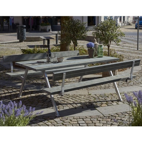 Trænger dit gamle bord-/bænkesæt til udskiftning? Eller måske leder du efter et havemøbel, som kan bruges til aktiviteter og spisning i dit udendørsareal. Så er dette ”Plus Alpha ReTex”-sæt en fin løsning! Her får du et sæt med 1 bord og 2 integrerede bænke, som er velegnet til fællesspisning, eftermiddagskaffe, vinaftener og mange andre aktiviteter. Det grå sæt har 6 siddepladser, og kan findes i flere varianter, som er med og uden ryglæn. Du kan derfor vælge lige præcis dét havemøbel, som passer til familiens behov.