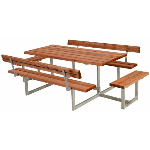 Mangler du et stort udendørs bord-/bænkesæt med plads til at samle venner og familie i haven? Så kan du med dette basic-bord-/bænkesæt fra Plus få en god løsning på et udendørs samlingspunkt. Sættet passer nemlig perfekt til grillhygge, spilaftener, brunch og lignende sammenkomster. Og du kan finde sættet med påbygninger samt med eller uden ryglæn. Der er siddepladser til 7-8 personer, al afhængig hvilken model du vælger.