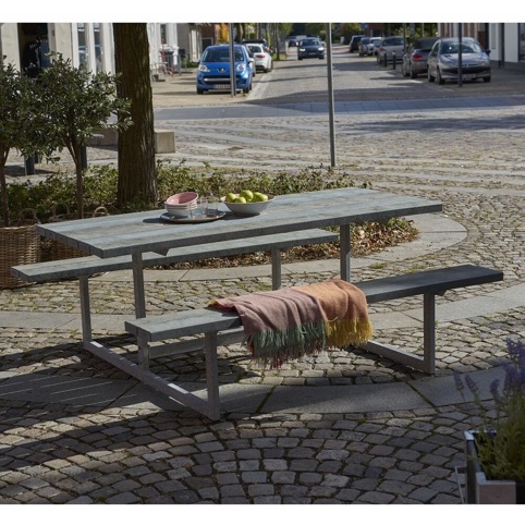 Bord-/bænkesættet fra Plus er fremstillet af ReUsed plast/tekstil, som er 100 % genanvendt tekstil og plastik. Derudover har det en rustik overfalde samt struktur, som giver hver planke et unikt udtryk. Stellet er af varmgalvaniseret stål. Bord-/bænkesættet kræver hverken efterbehandling eller vedligeholdelse, derfor kræver det kun, at du i ny og næ bruger vand og børste. Du vil få bord-/bænkesættet leveret usamlet, og derfor skal du finde værktøjskassen frem sammen med din indre gør-det-selv-person. For at få den helt rigtige montering, kan du følge vejledningen.