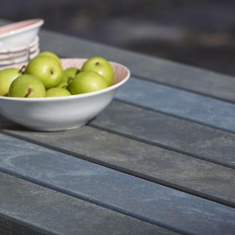 Bord-/bænkesættet her er fremstillet af ReUsed plast/tekstil, som er 100 % genanvendt plastik og tekstil. Sættet kommer i grå, og det har en rustik overflade og struktur, som derfor giver hver planke et unikt udtryk. Det er vedligeholdelsesfrit, og det kræver ingen efterbehandling – du kan blot nøjes med at vaske det med vand og børste. Stellet er af varmgalvaniseret stål. Derfor egner begge materialer sig til udendørsbrug. Du får produktet som et komplet saml-selv-projekt, og derfor skal du selv i gang med at montere det hele. Du kan følge monteringsvejledningen, for korrekt montage.