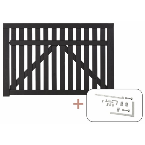 Ønsker du at tilføje en låge til din hegnløsning? Så finder du her denne brede låge, der vil passe perfekt sammen med Plus Country-hegnserie i sort. På den måde vil du nemlig sikre, at hegnet og lågen har samme stil og vil blende godt ind med hinanden. Serien har et yderst diskret og stilrent design, der vil skabe en rolig og harmonisk atmosfære i uderummet. Målene på lågen er B: 150 cm x H: 98 cm. Desuden medfølger beslag til opsætning af lågen.