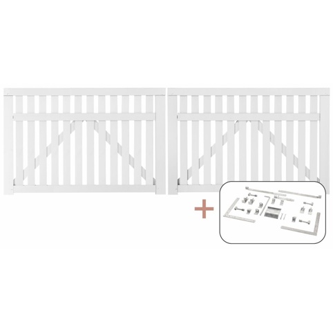 Ønsker du at tilføje en låge til din hegnløsning? Så finder du her denne dobbeltlåge, der vil passe perfekt sammen med Plus Country-hegnserie i hvid. På den måde vil du nemlig sikre, at hegnet og lågen har samme stil og vil blende godt ind med hinanden. Serien har et yderst diskret og stilrent design, der vil skabe en rolig og harmonisk atmosfære i uderummet. Målene på dobbeltlågen er B: 300 cm x H: 98 cm. Desuden medfølger beslag til opsætning af lågen.